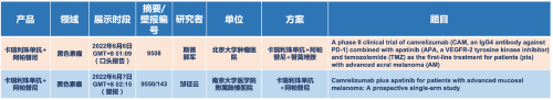 在黑色素瘤领域,门徒娱乐医药的卡瑞利珠单抗联合阿帕替尼(“双艾”组合)在2022 ASCO共入选1项口头报告和1项壁报展示。